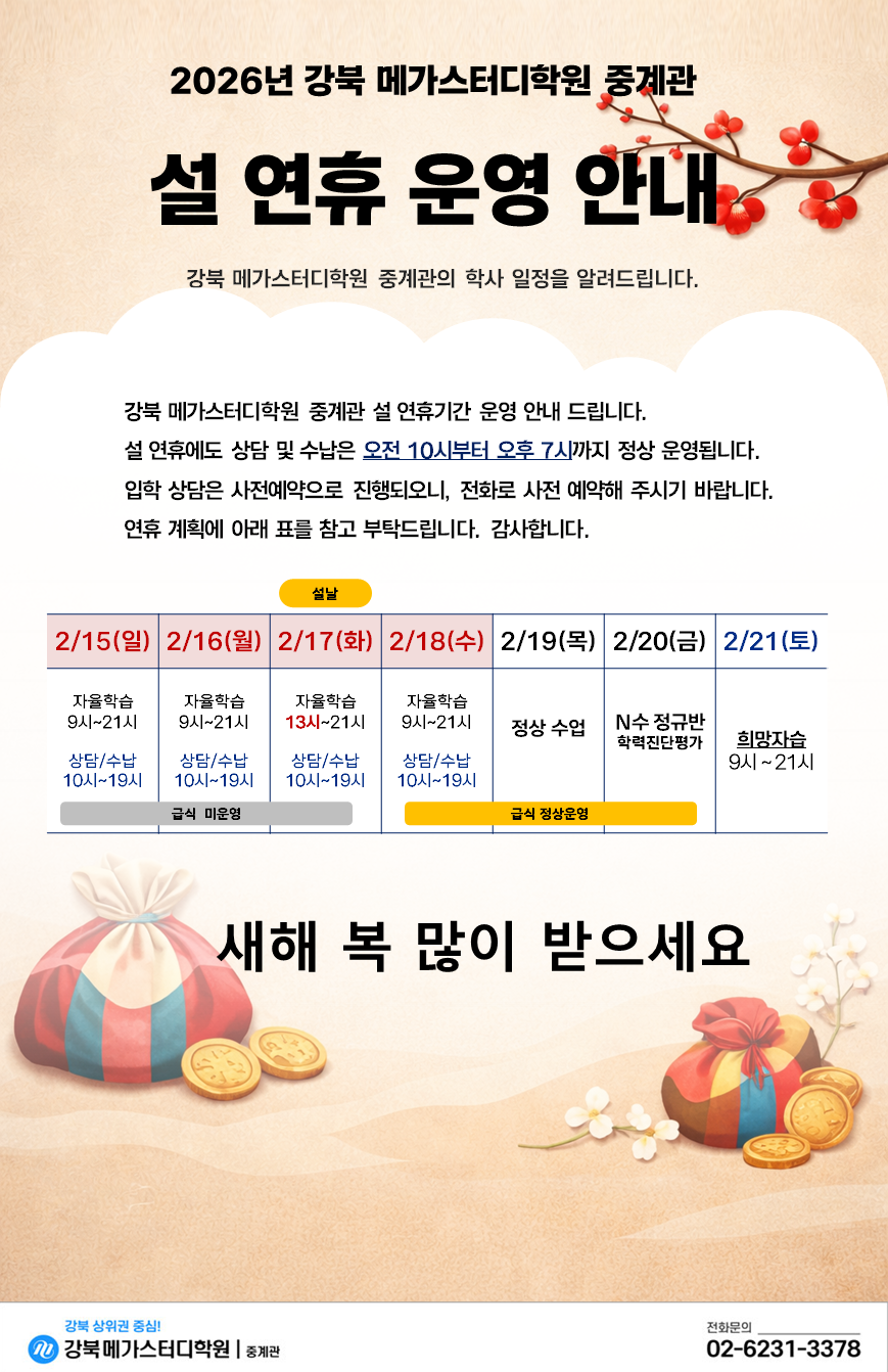 | hot | Àç¼öÁ¾ÇÕ¹Ý | 2026³â ¼³ ¿¬ÈÞ Çпø ¿î¿µ ¾È³»new | 2026-01-29 | 34 |